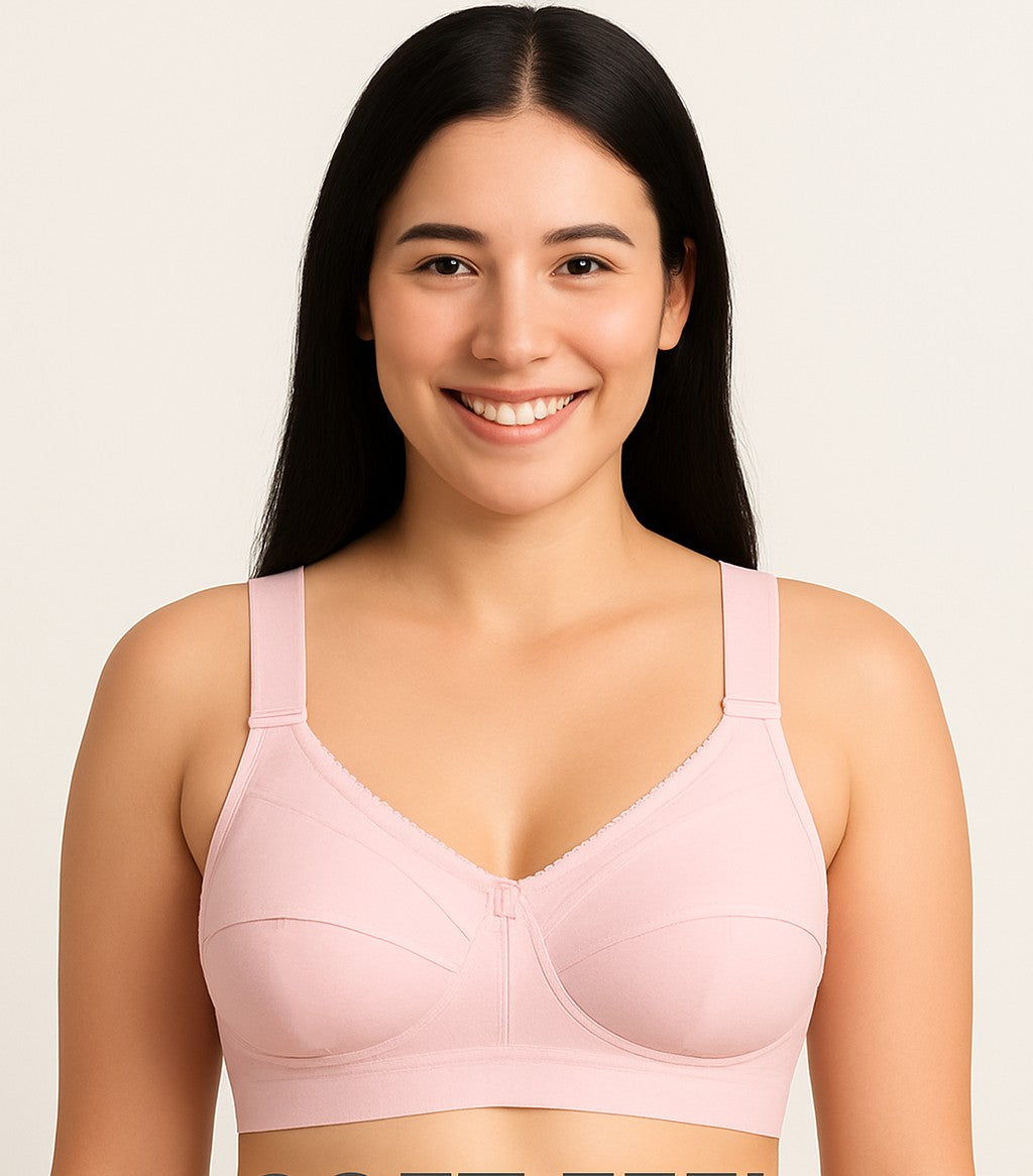 Experience unmatched comfort and all-day support with our C Cup Daily Wear Bra, specially designed for modern girls and women. This non-padded, wirefree bra features a single-layer breathable pure cotton fabric construction for a natural shape and irritation-free wear. The broad underband and wide shoulder straps ensure a secure fit, offering enhanced back support and reducing shoulder pressure – perfect for everyday use.